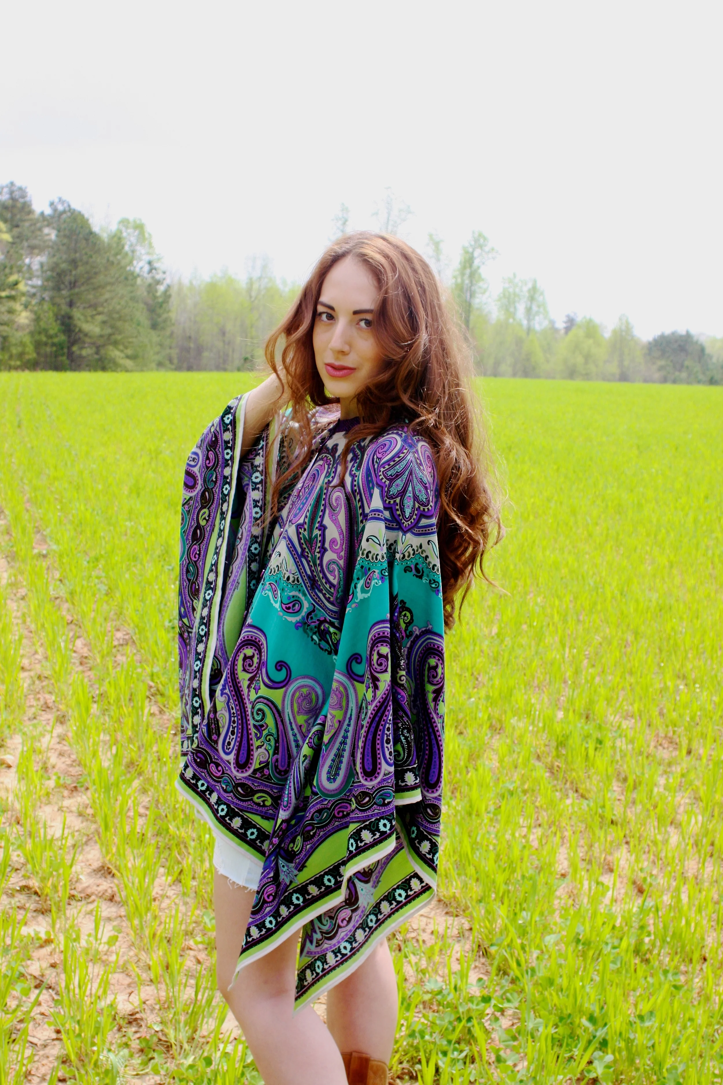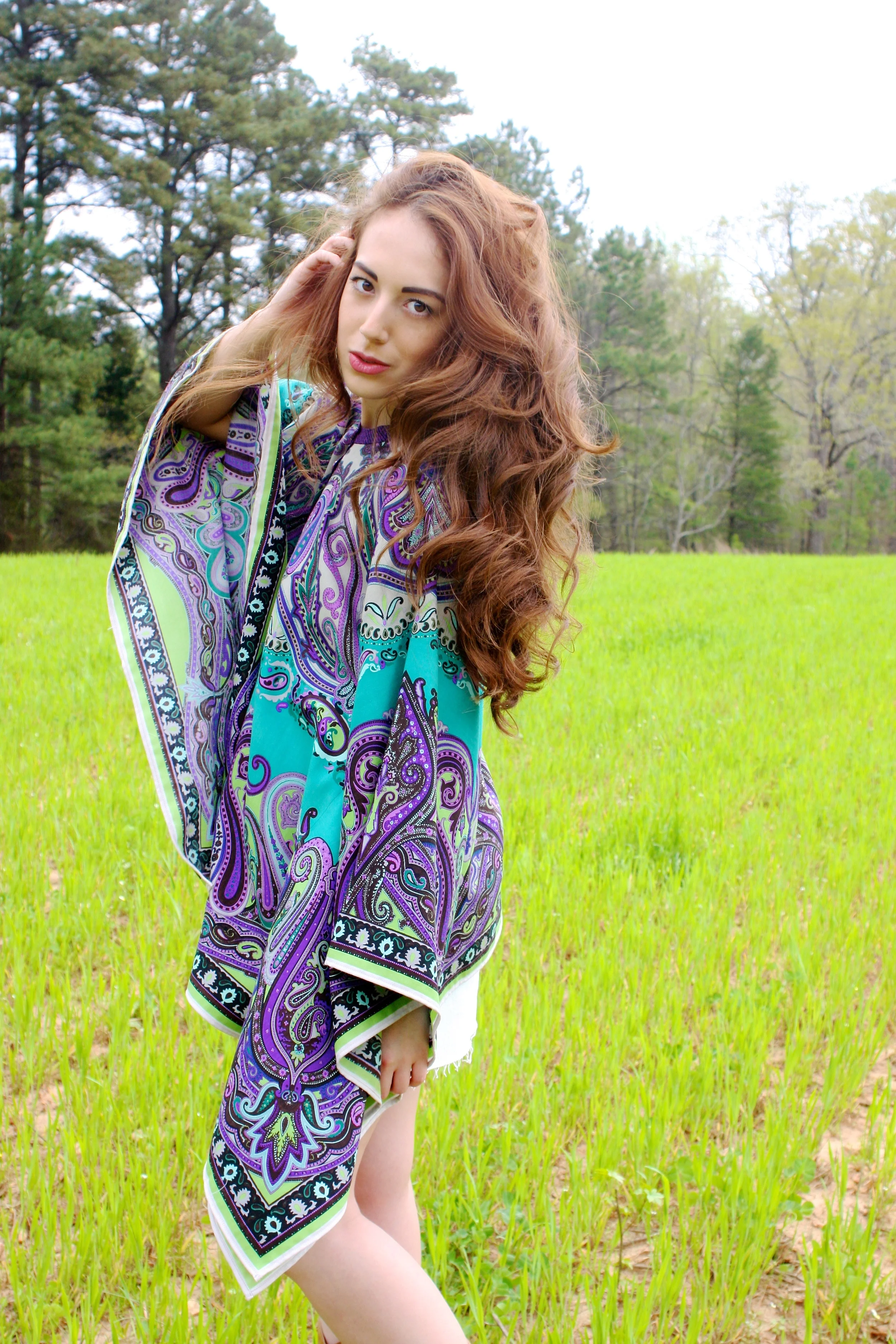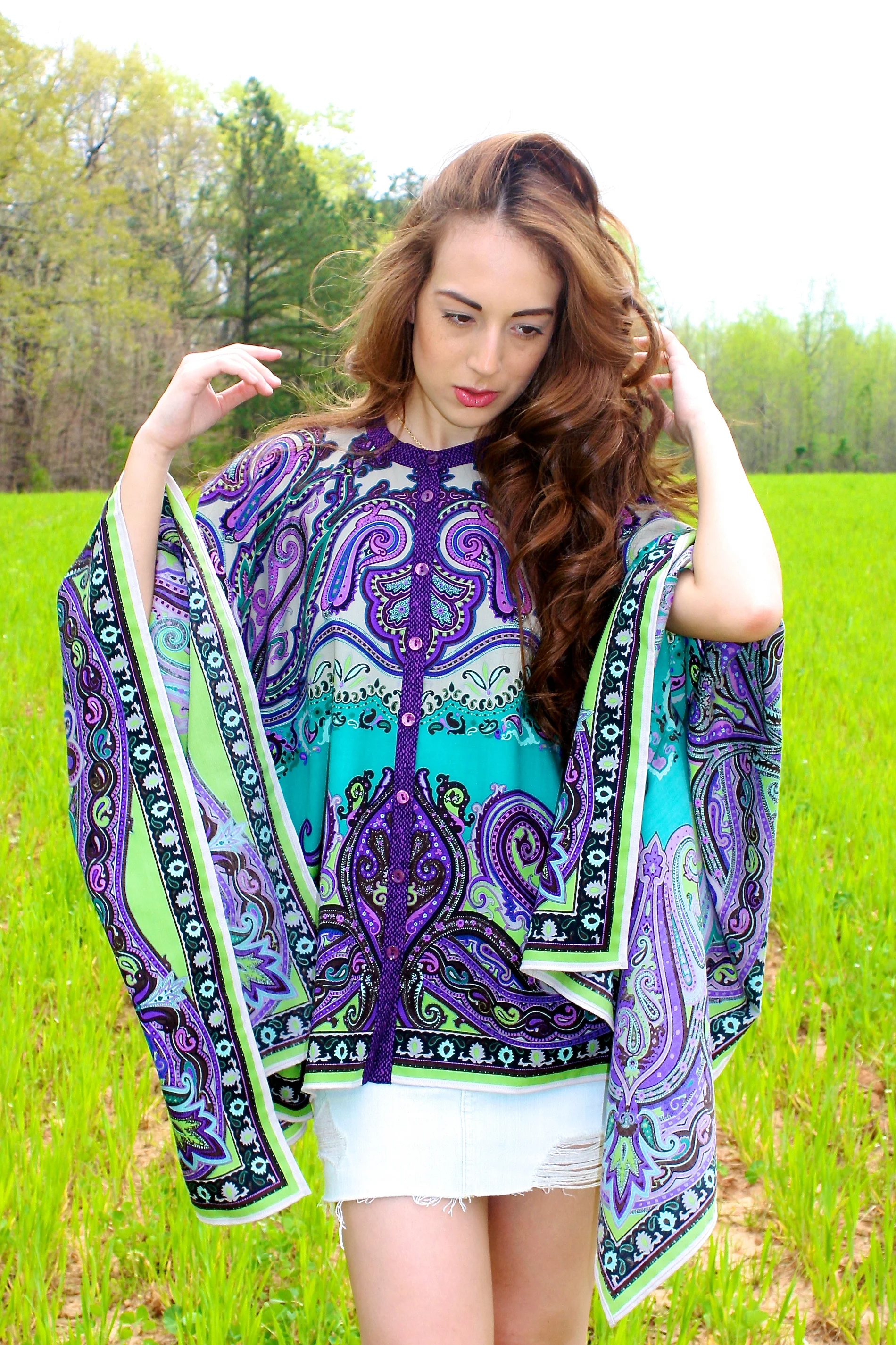Coco wears an Etro Cape and my Abercrombie denim skirt from middle school, Vintage cowboy boots