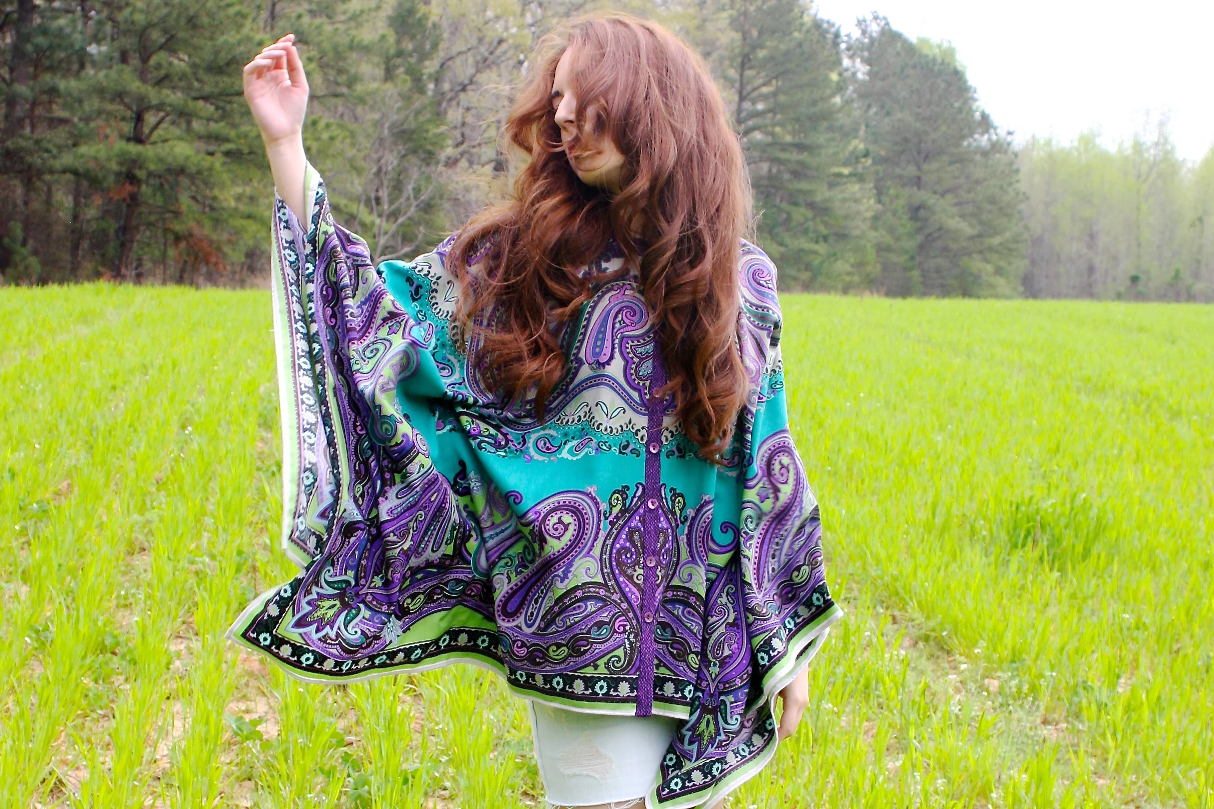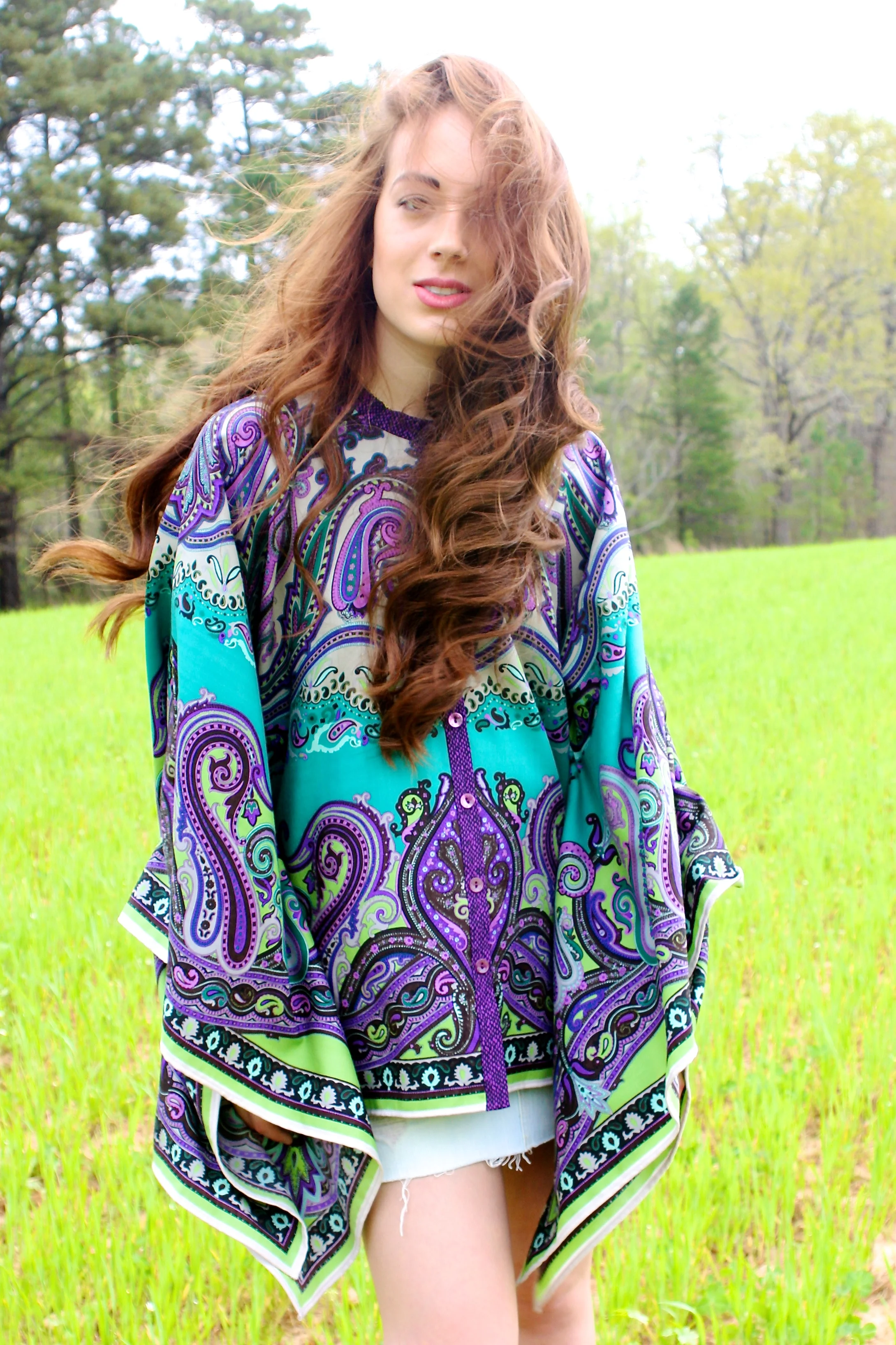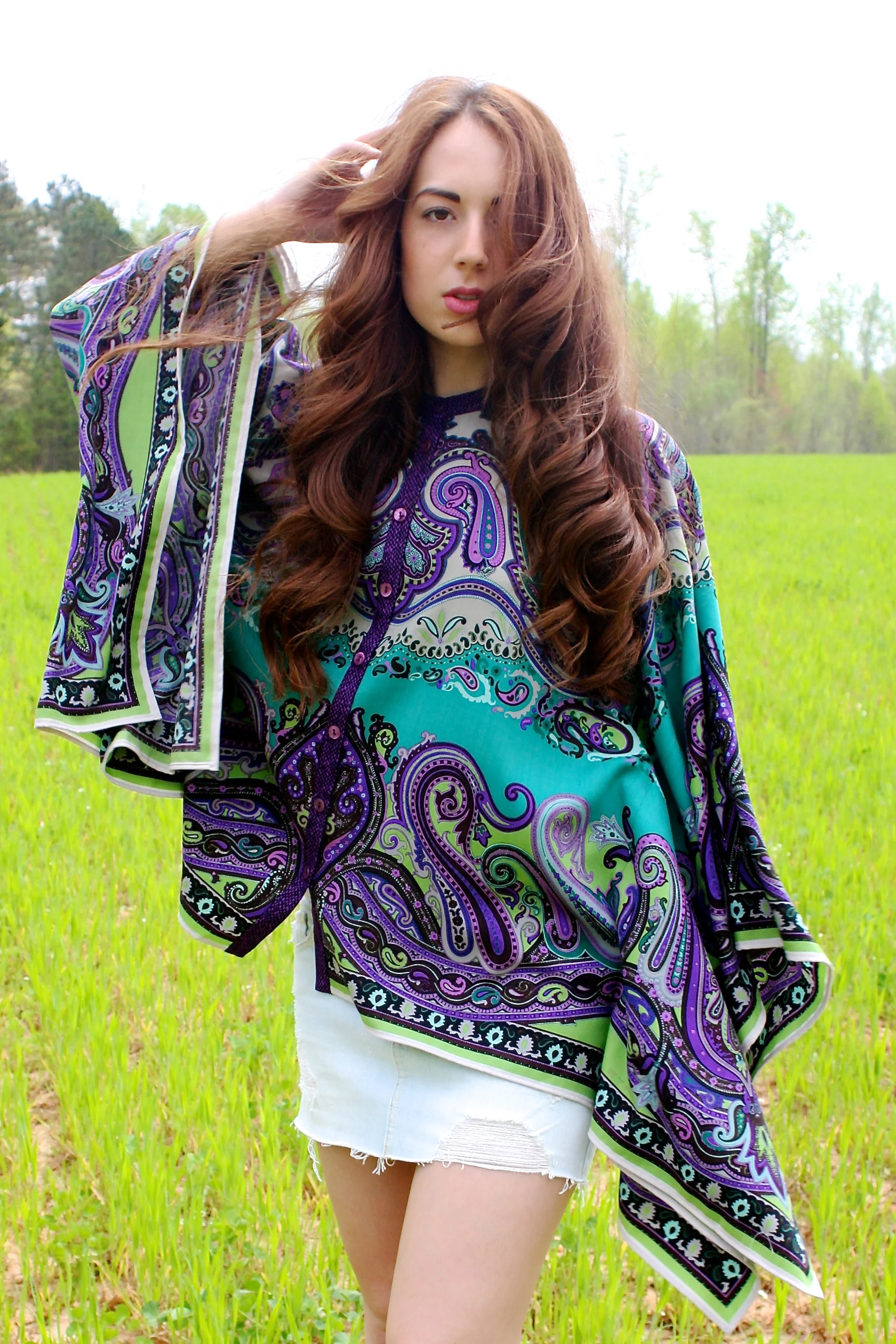 Coco wears an Etro Cape and my Abercrombie denim skirt from middle school, Vintage cowboy boots