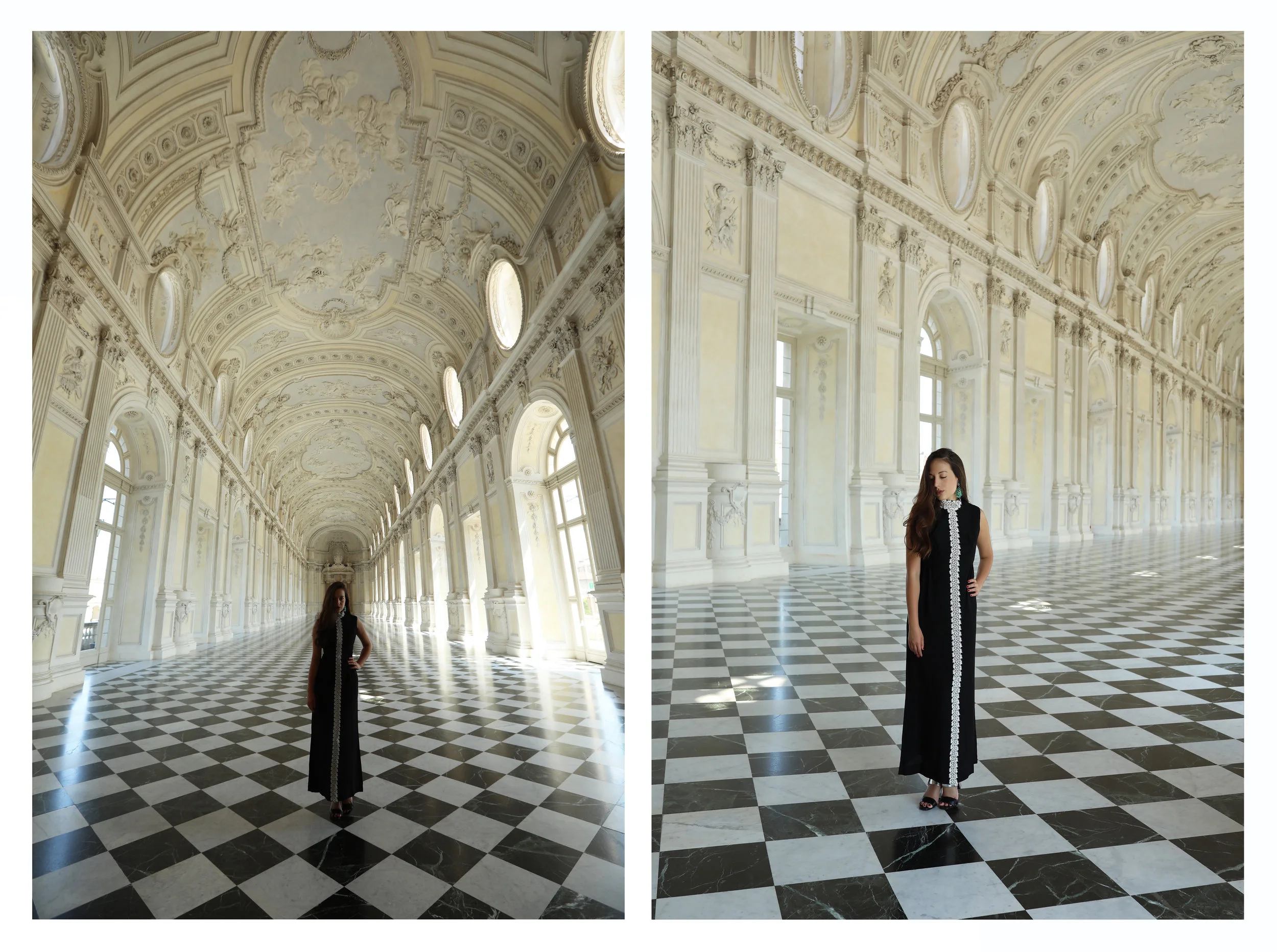 Before our trip, Sarah sent me a number of Instagram photos of places that she wanted to pass through while we were in Europe. She found this ballroom randomly when she was stumbling down a rabbit hole of Italian hashtags and decided for the both of us that we would be going there to shoot. The Palace of Venaria is located in a town called Turin. We were leaving Lake Como and driving to the Asti wine region in Piedmont country, so it wasn't too far out of the way to stop by for lunch, a little history, and a new fleeting adventure!