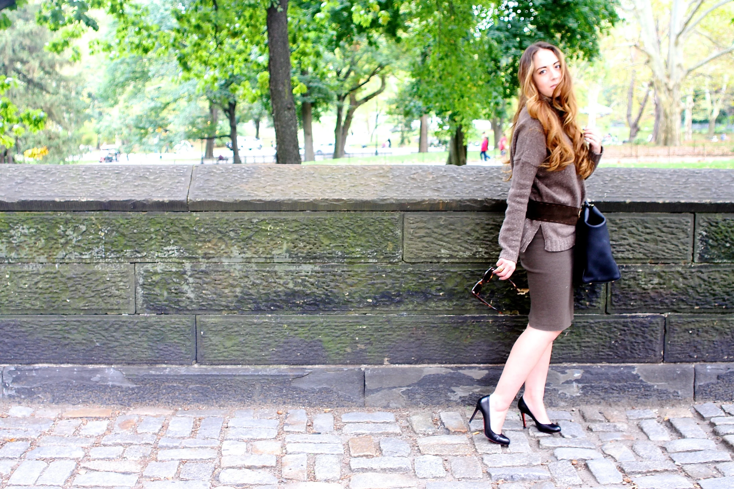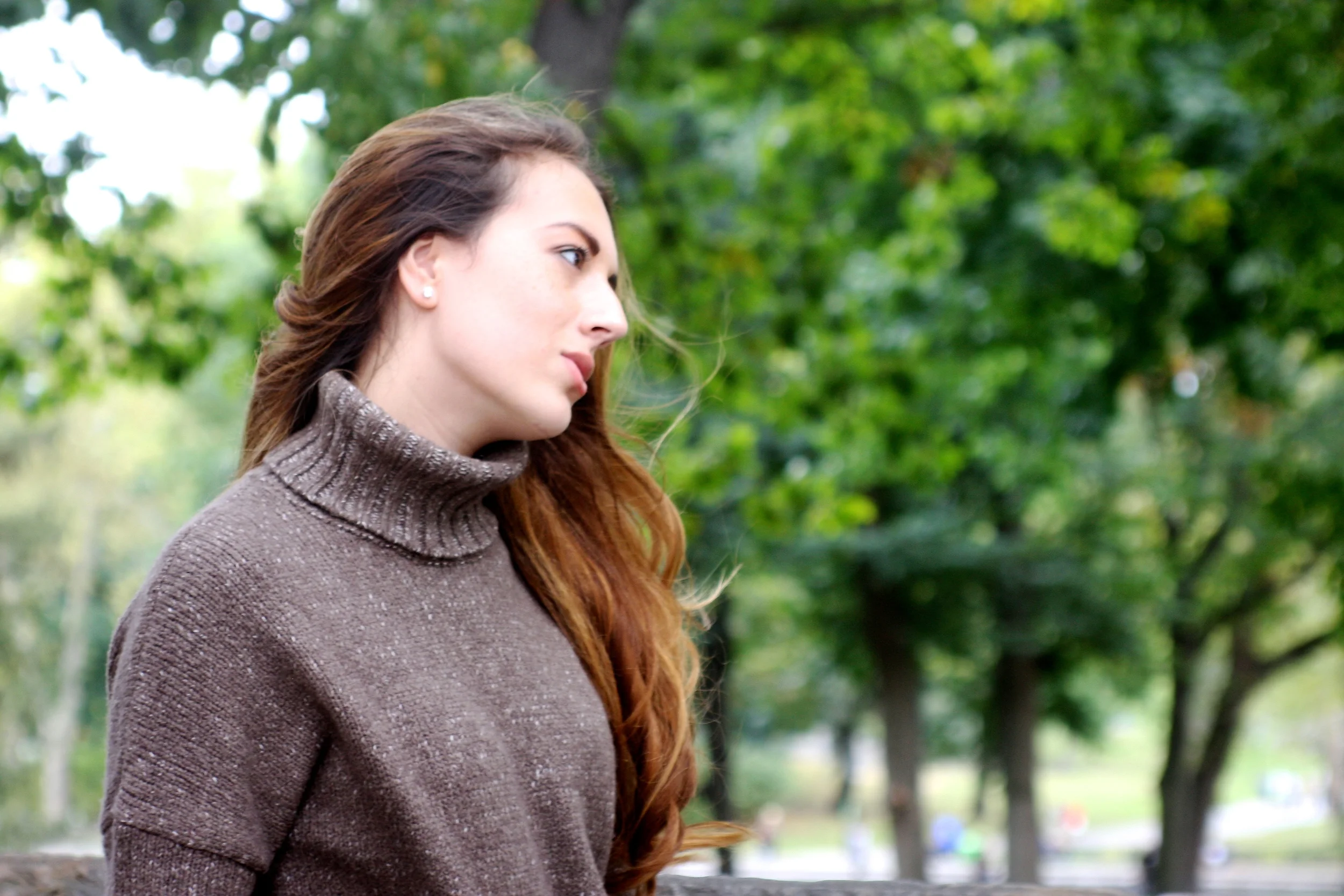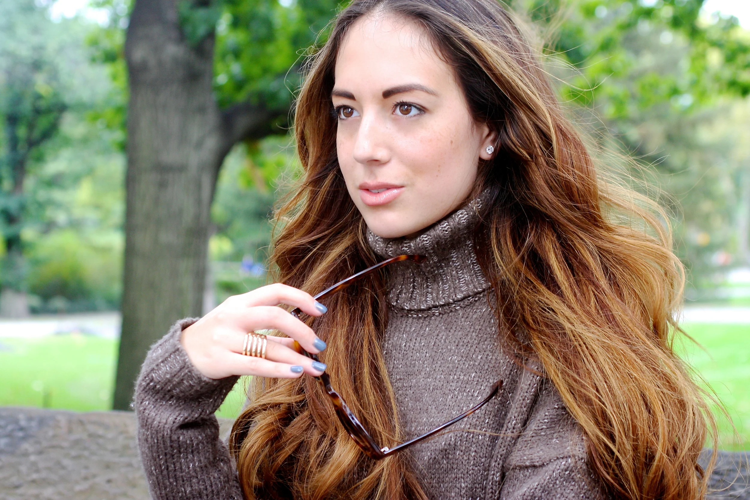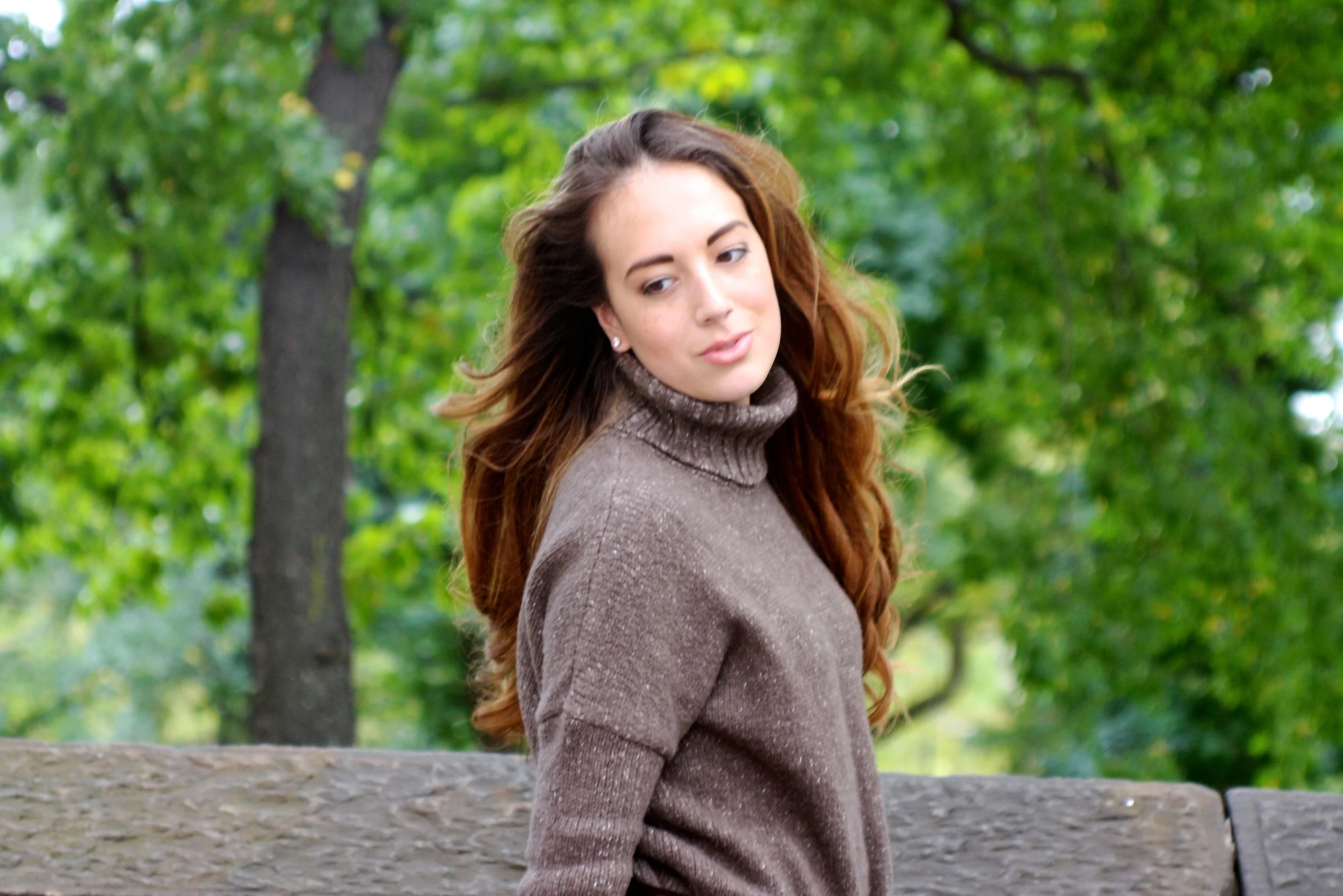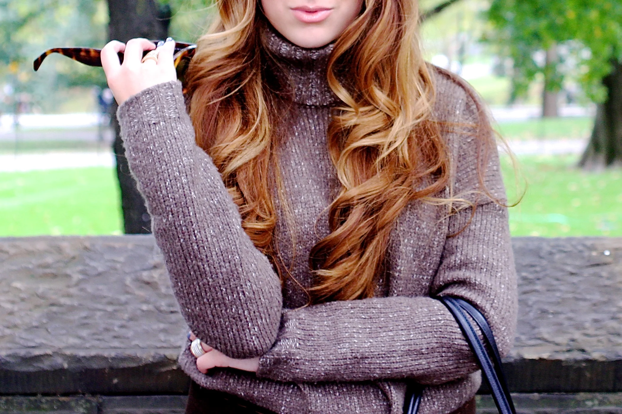 Bethany, my best friend, spotted me sitting on my concrete bench and came running towards me right when my meeting ended (how this was magically timed is beyond me). We ran to one another, the way two people run to each other in those cheesy Lifetime movies and we hugged for a good three minutes, until it was beyond uncomfortable to witness, but we enjoyed every second our of reunion. We stepped a few blocks uptown on the west side of the park, snapped these quickly and went and grabbed some sushi for lunch in between my next call, and catch up on some much needed girl talk. I love a good turtleneck, especially if it's large and chunky. This one from Vince is rather soft and cozy, and one that they seem to make every season in different color combinations. There's something really exciting about staying tonal throughout your entire look, and it's something that I am really trying to do a better job with. Opt for color on color and break it up with a darker shade of the same color in the form of a belt or a scarf.