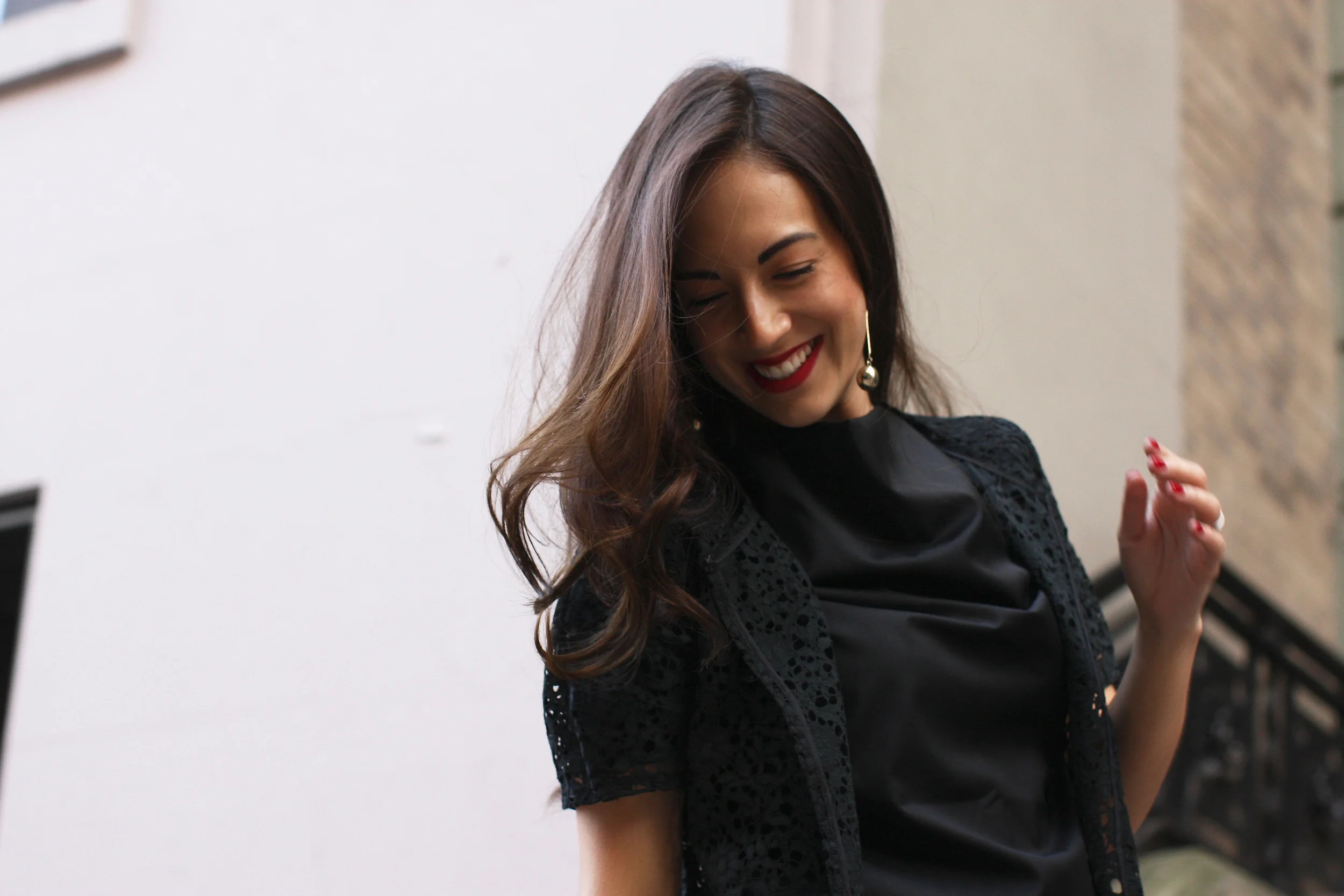 Black is the color of New York. It's the color that makes you feel powerful. It's the color that makes you feel good. It's the color that doesn't require much thought. I love this outfit, as it represents my personality so well- a mixture between lady-like lace, a tailored simple blouse and leather leggings. You can easily swap out the heels for black ballet flats or boots and still pull it off. The great part about New York is the fact that you can go directly to whatever you need to do in your work clothes and still look chic. This is a prime example of versatility in the simplest form. So I've got a lot to think about over the next few months- whether I want to stop being a nomad and really move back to New York, or continue living out my "experiences", but as for now- Hello to you, from my New York.