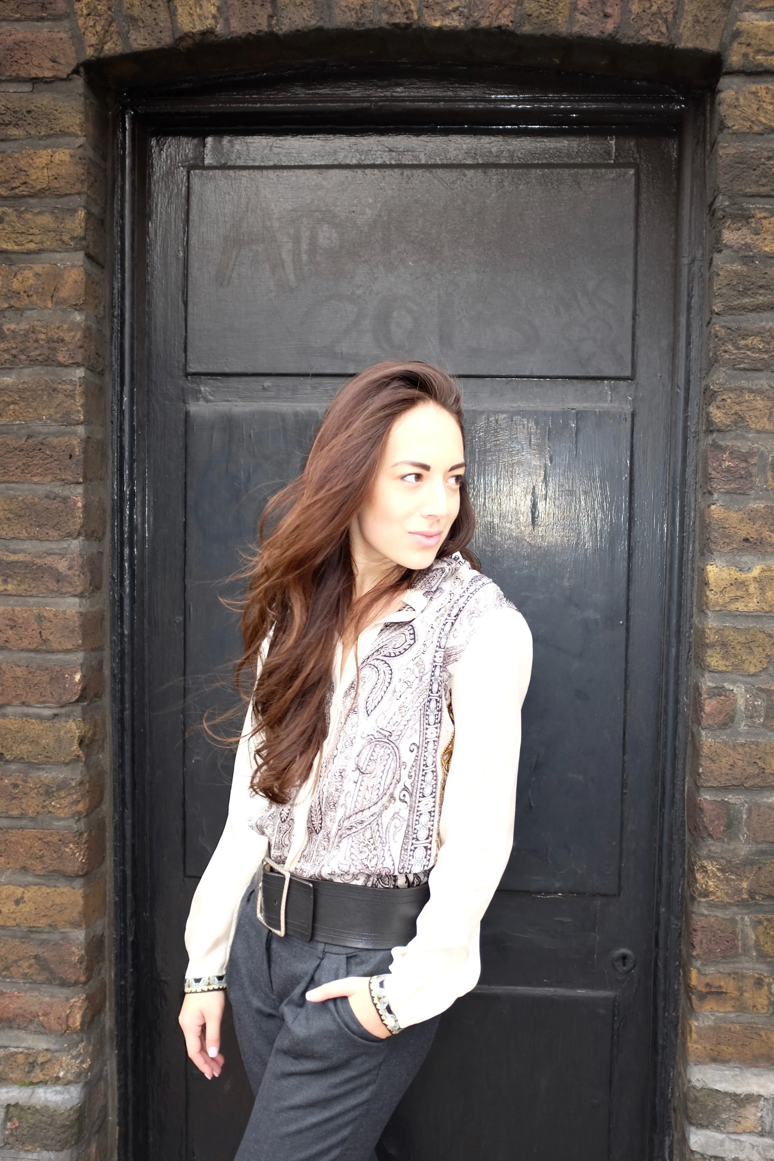 Usually during this time of year, I think of fashion differently than most. I love fur jackets with bare legs and sandals and then wear leather moto jackets and boots in the summer. There is something special about doing what’s not expected and then pulling it off with ease and comfort, even if the weather is not behaving in your favor. That was me in London. On one of my first nights there, I went out with two American friends of mine that happened to both be in town at the same time. I wore an oversized silk slip dress from Dries Van Noten with a blazer by Jason Wu, which you can see on my Instagram here. I'm totally into collared shirts if you haven't noticed; I always have two packed with my in my suitcases wherever I go- shirts that slightly have strategically popped collar and the sleeves that are expertly rolled to expose a wrist of gold bangles. This was my daytime uniform in London, paired back with my leather leggings and over the knee boots.