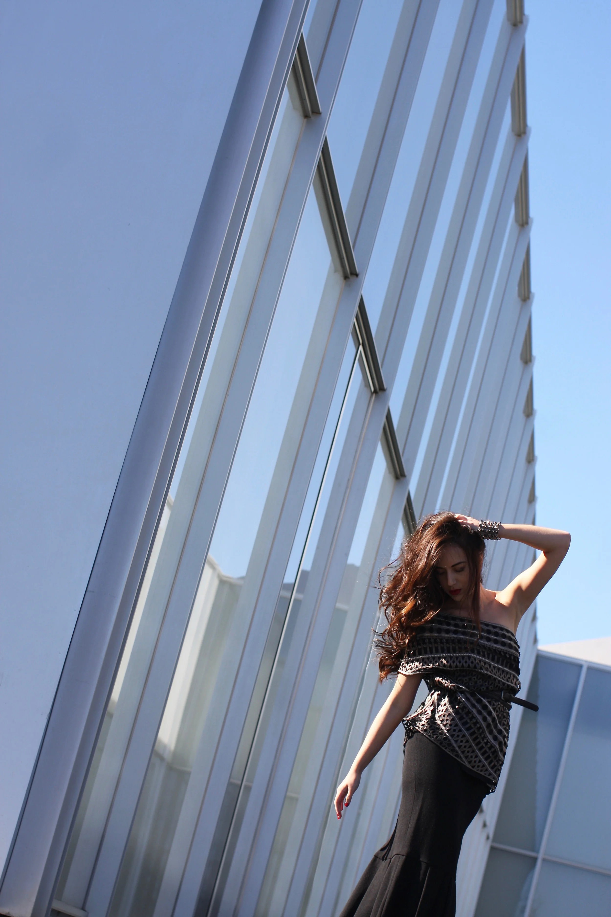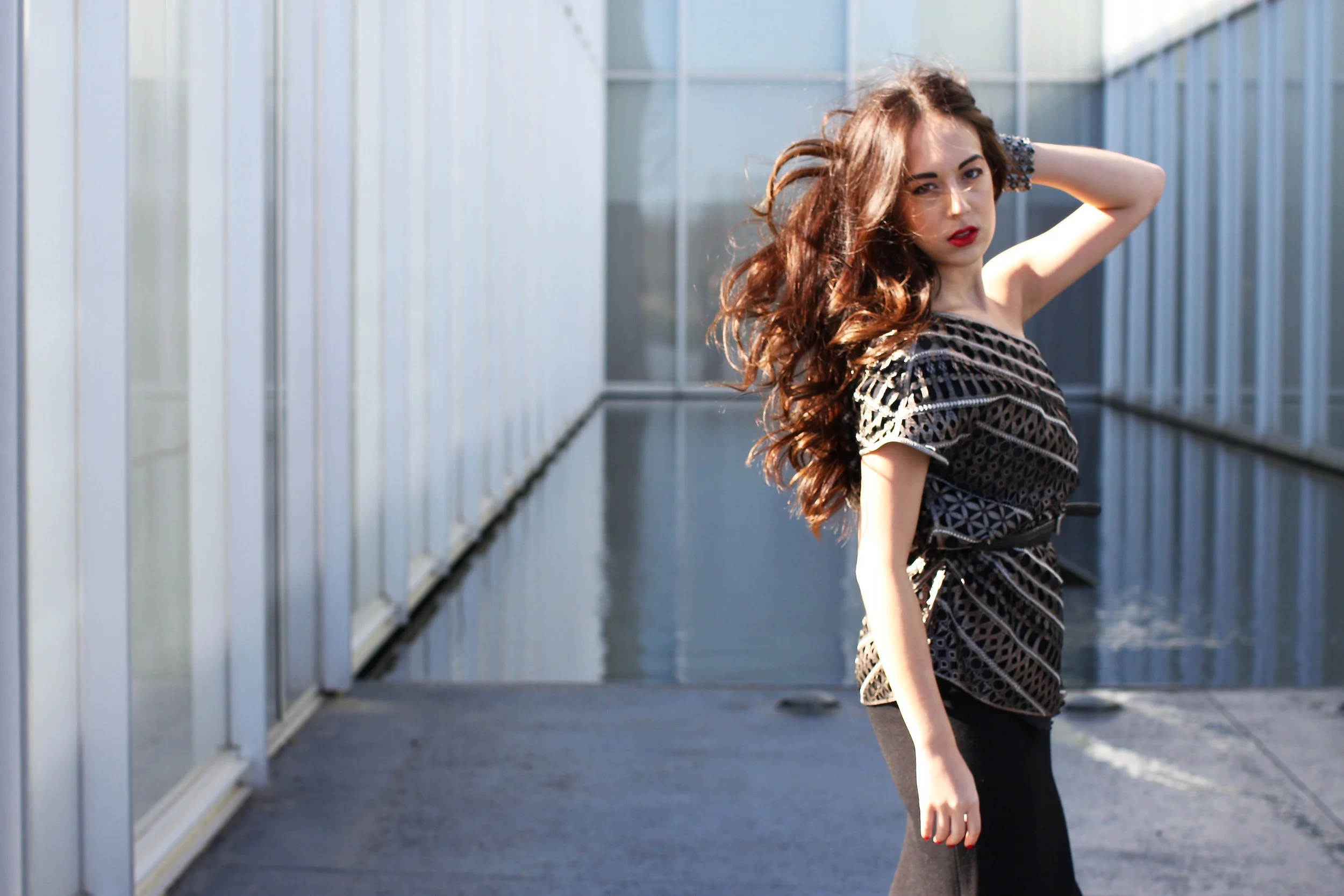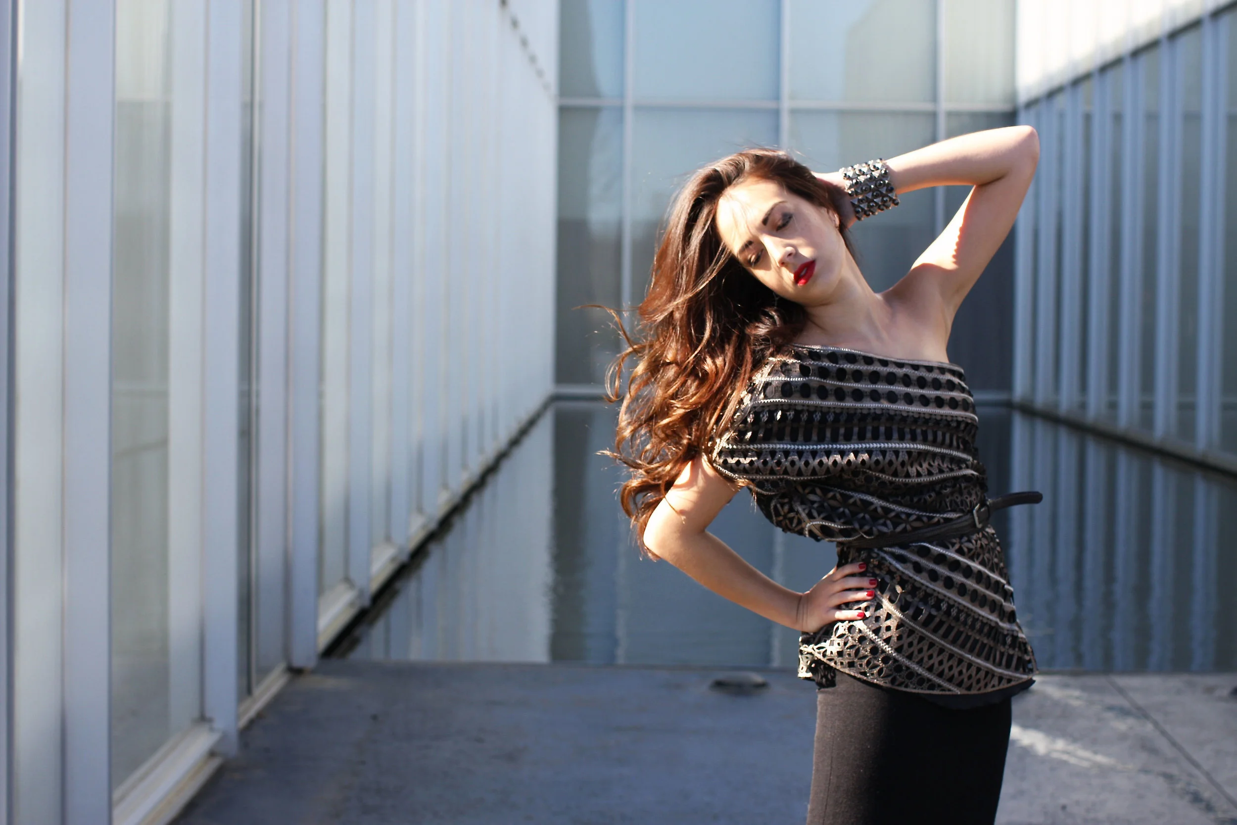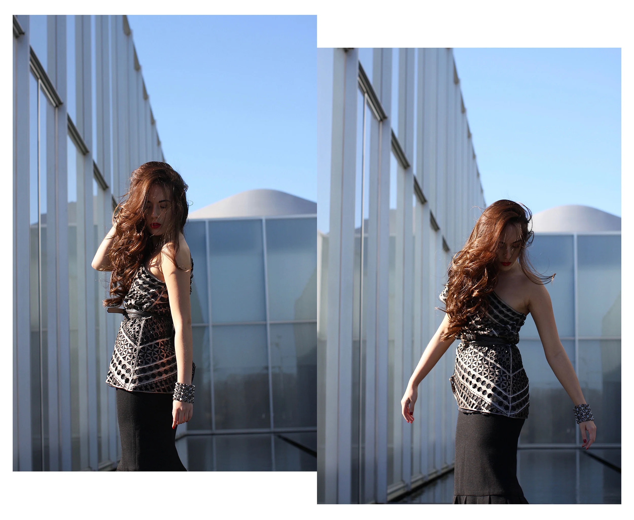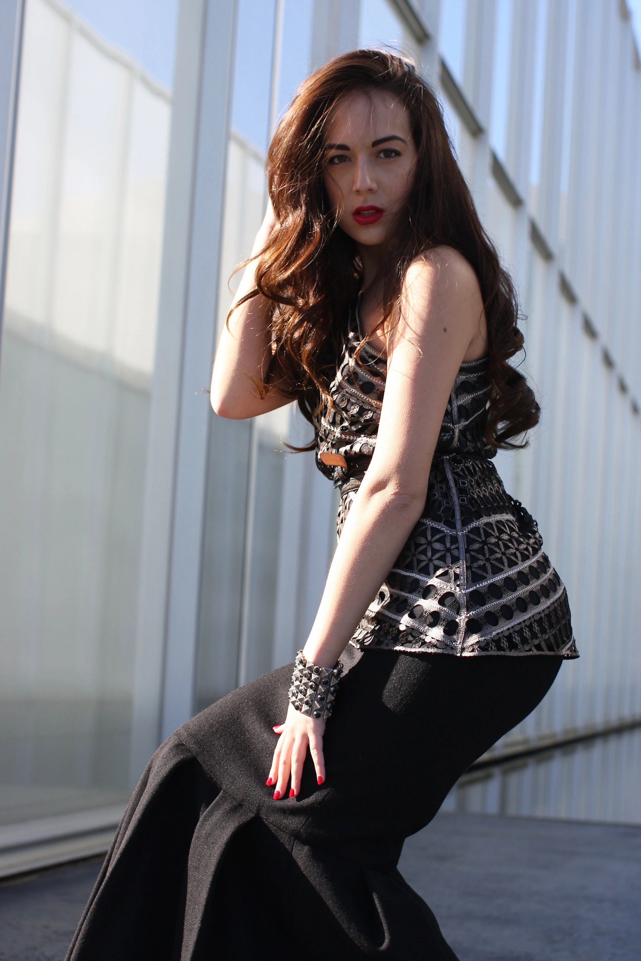 Coco wears: Etro Metallic Top, Sandro Skirt. Photography: Bethany Halbreich