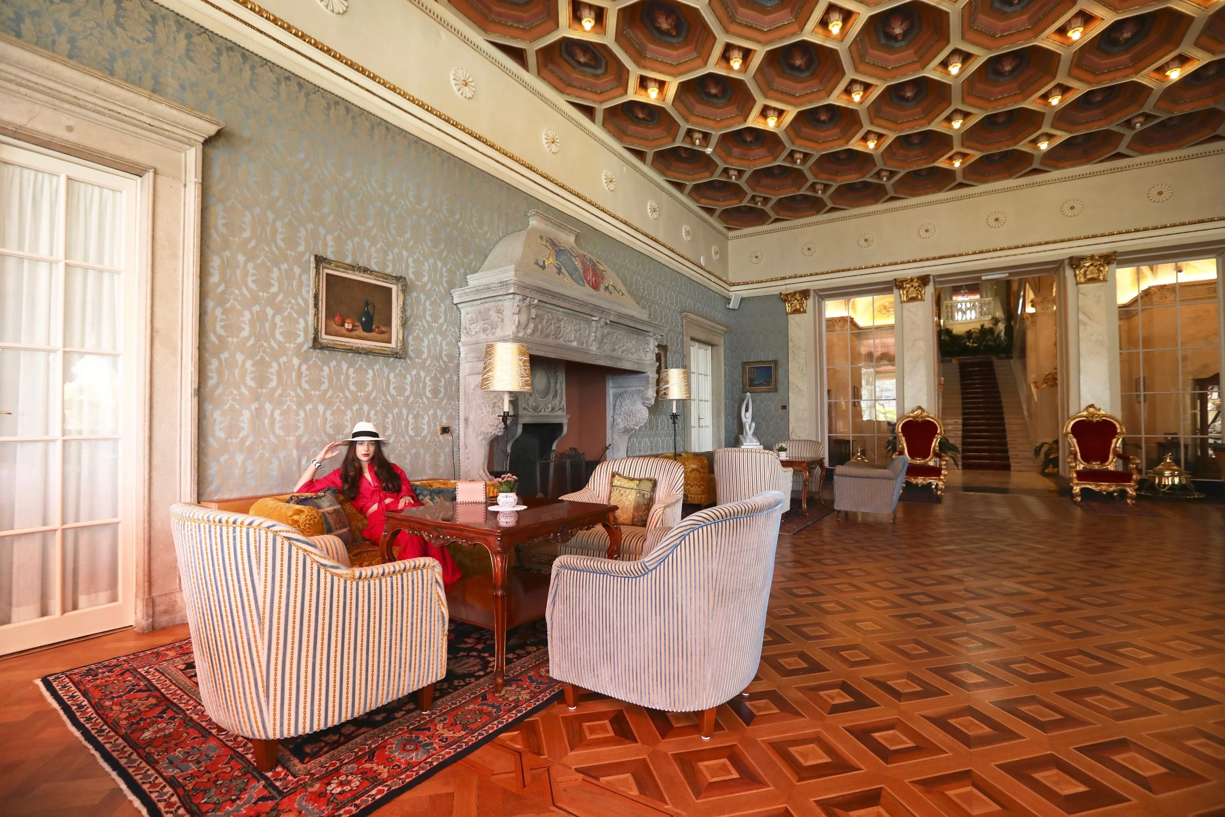 Coco Wears: A vintage silk pantsuit, Prada silver platform sandals, Valentino rock stud wallet-on-a-chain, vintage 70s sunglasses, Borsalino "Tesi" hat. Photography: Sarah Son. Location: Bellagio, Lake Como, Italy. City Guide: Lake Como