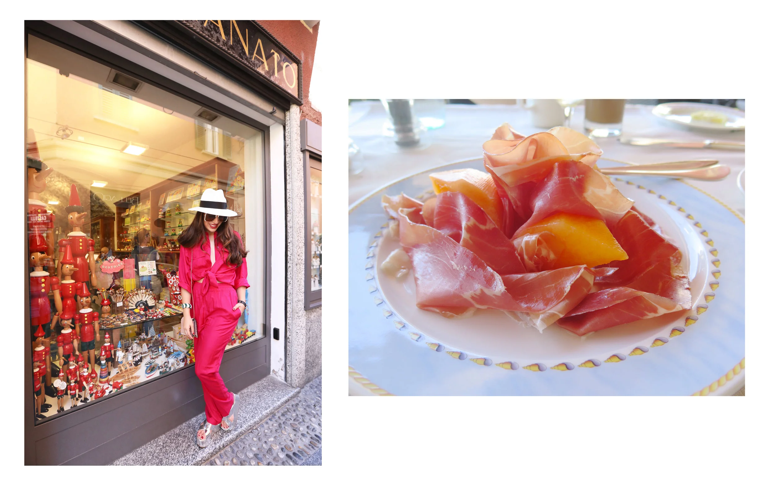 This particular day at Lake Como was very, very hot. I carried myself around the crowded streets of Bellagio in a silk pantsuit that resembled pyjamas and an Italian straw hat by the one and only Borsalino. I picked up this pantsuit at a local Salvation Army in Raleigh for $7.99 when I was visiting my parents back in April and it's quite possibly the most comfortable thing I own. I added in some intricate vintage jewelry that was from my Korean lineage, my new Prada sandals that I picked up at the outlets in Firenze, and a Valentino wallet-on-a-chain for some texture. Over the years, I've also conjured a series of brain-scrambling spectacles that are all unique in design and fitting for my personality- these fabulous over-sized squares in particular are vintage from the 70s. In my bag was also a printed sarong that I designed during my time in the Orient just in case I needed to wrap my hair in a scarf when we were boating around from village to village. Together, this created an Italian holiday travel outfit that was easy to run around in and breezy enough to keep me cool on my journey around town.