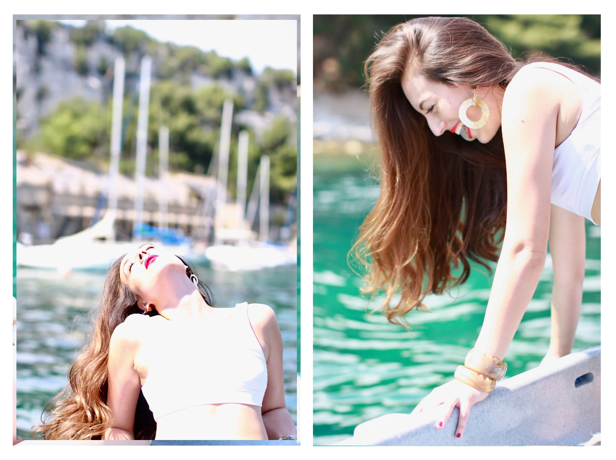 I’m trying to find the words that would explain how much I loved taking these photos in the calanques. When I think of summer in Europe, this is it- boating topless like the French do, eating cherries and tomato and cucumber salad on a boat, and laughing so much that our tummies feel small and hurt from crouching over. We were cruising in the wind, stopping in all the hidden calanques with secret beaches, taking a slew of photos and selfies, discussing our passions and dreams and reading John Richardson's Biographies on Pablo Picasso. I love life so much and I really, really loved this day. Thank you to my dear friend Emily for capturing such vivid and alive photos of me. You brighten up my world and inspire me more than you will ever know!
